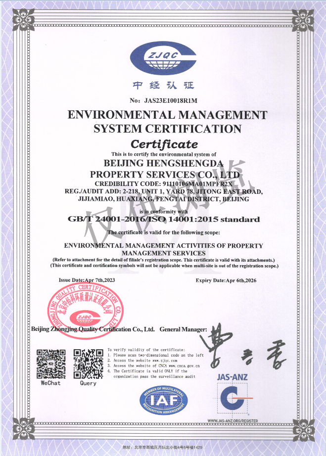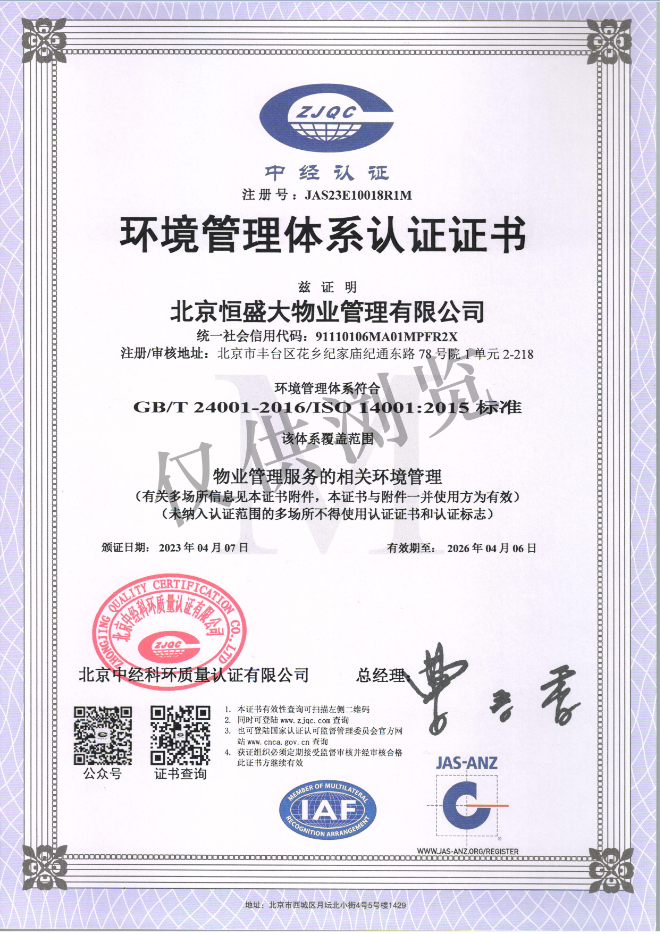 环境管理体系证书