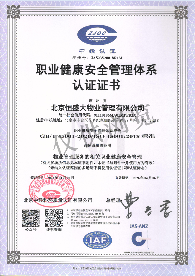 职业安全健康证书