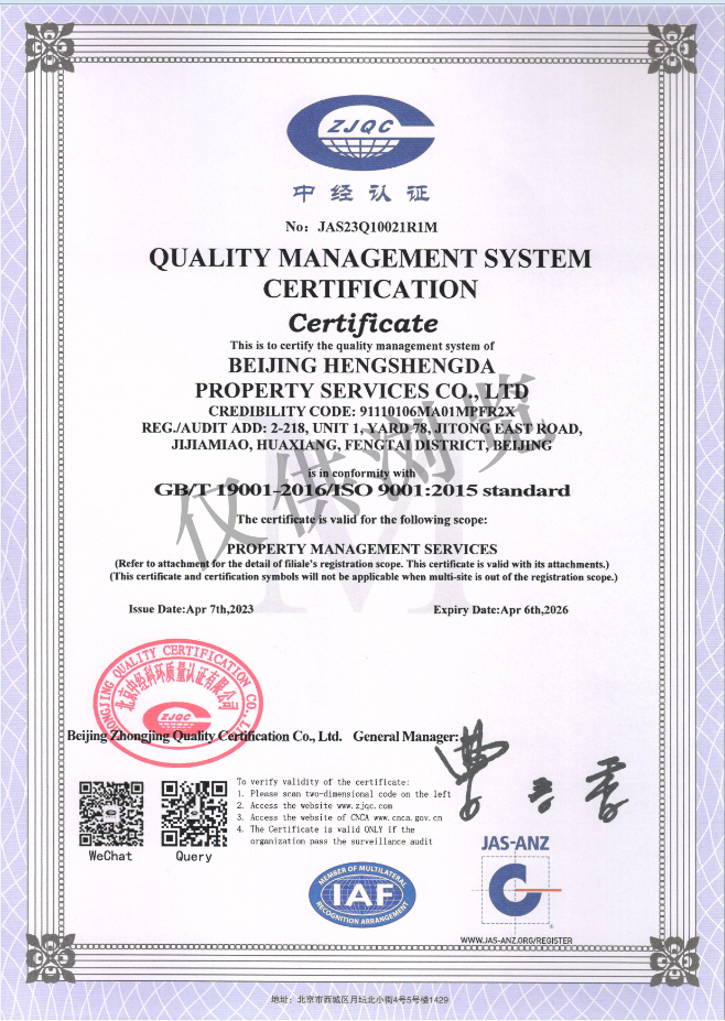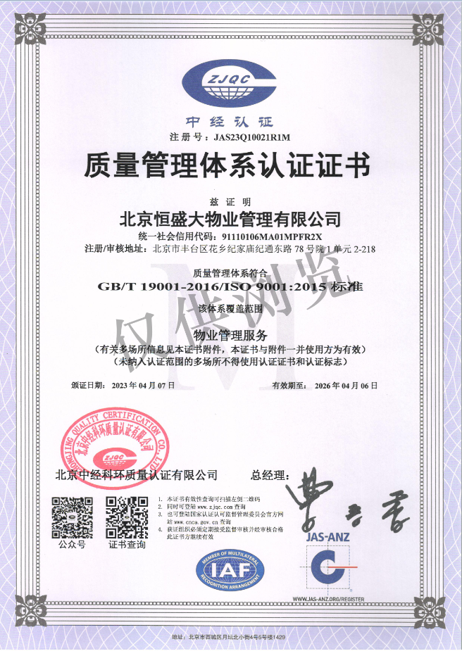 质量管理体系证书